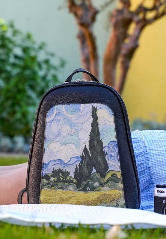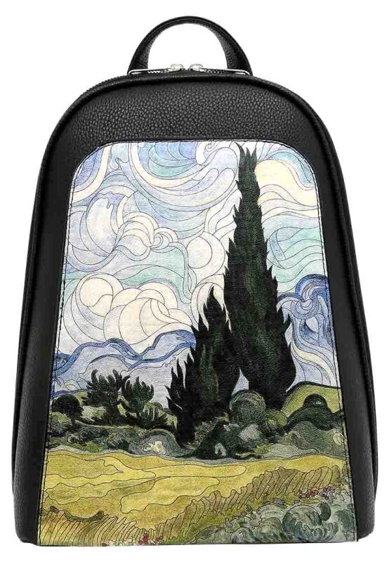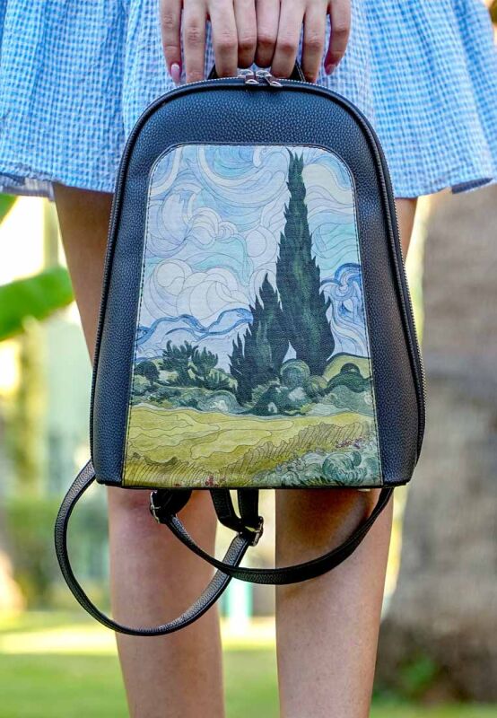 Set art free on your shoulders! Women Vegan Leather Black Backpack – Vincent van Gogh A Wheat Field with Cypresses Design blends iconic art with effortless style, creating the perfect lightweight and stylish backpack.