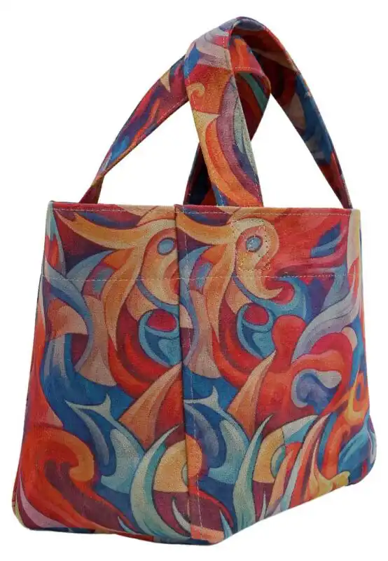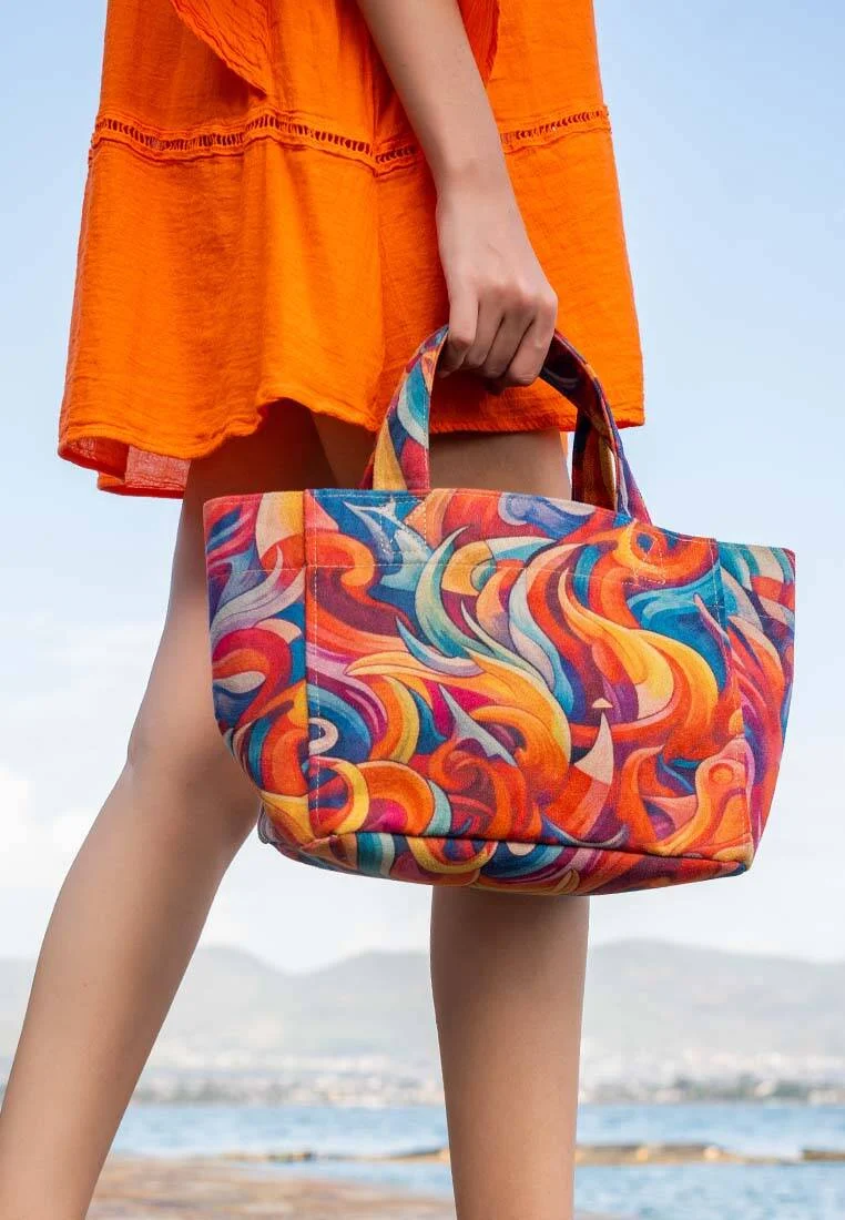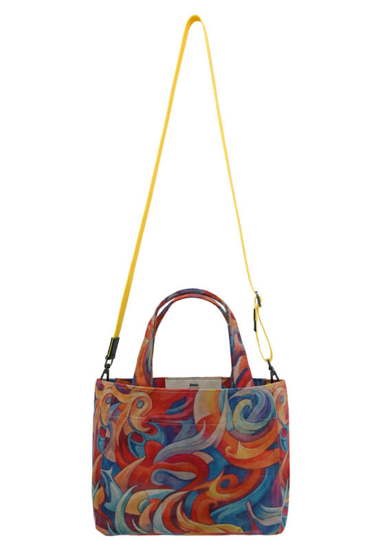 Spirals of Colour is a vegan bag with a unique design that combines the magic of blue and the shades of yellow.