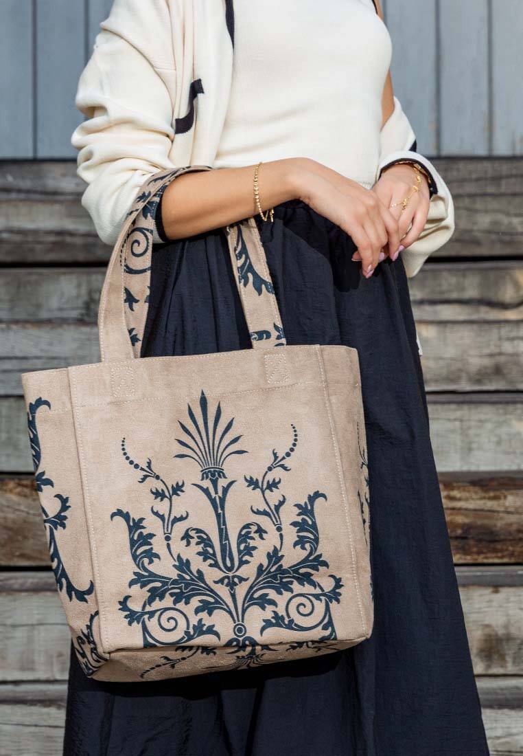 Made with high quality and sustainable materials, Renaissance Pattern designed Vegan Large Tote Bag stands out with its elegant details.