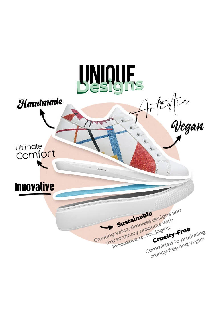 Let your style speak! Women Vegan Leather White Sneakers – Crash of Neuron Design, a Dogo Pulse model, offers extra support with its chunky sole sneaker build while ensuring all-day comfort.